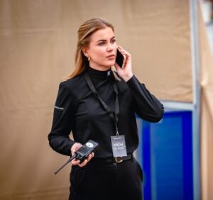 Tijdens de uitvoerende productie staan wij midden in de actie. Wij houden de regie op locatie en zorgen dat het draaiboek gevolgd wordt. Met een porto in de hand staan we in contact met alle betrokken partijen op locatie: EHBO, verkeer, beveiliging en organisatie.
